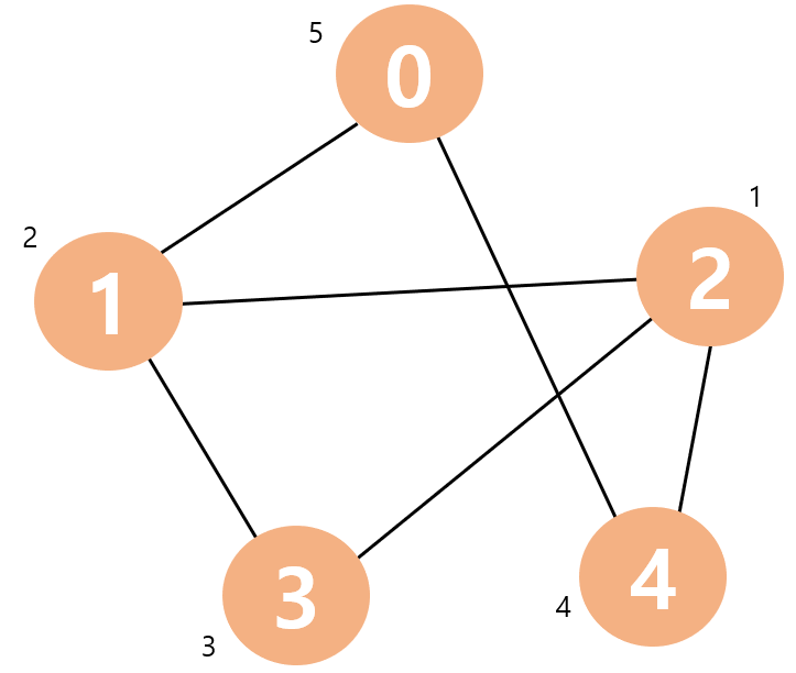 예시 그래프의 노드를 위 순서대로 진행하면 2 1 3 4 0가 된다.