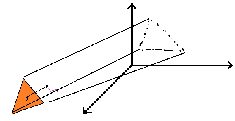 이때, 카메라로부터 안쪽이 Z의 양수방향으로 하였다. ( DirextX 와 동일 )