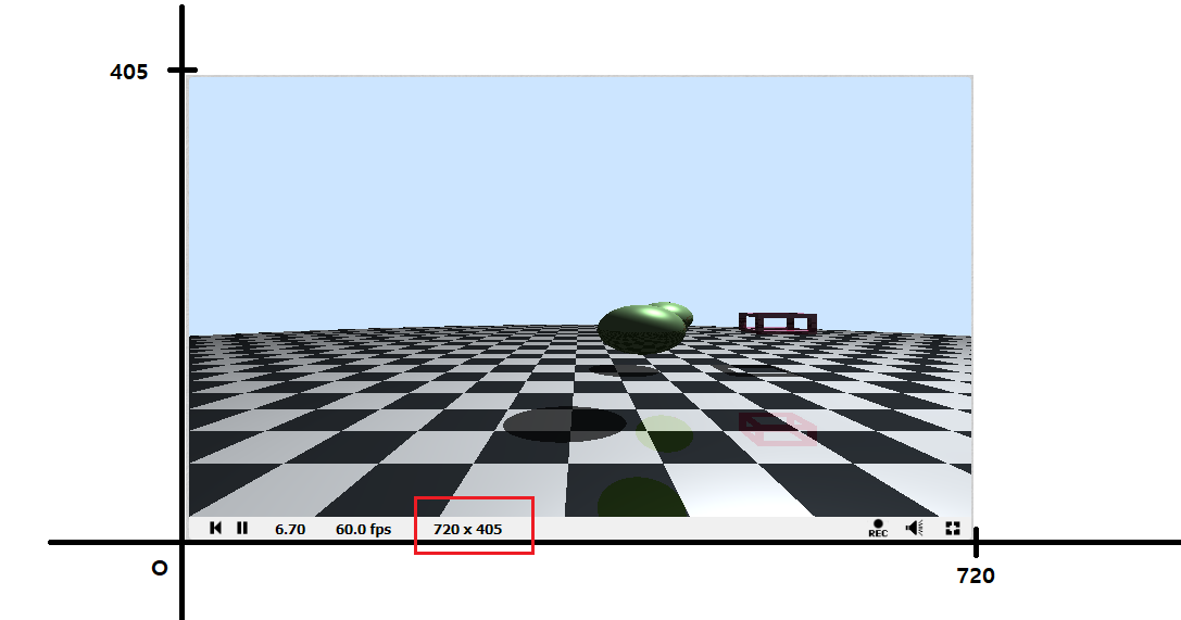 반환할 픽셀 컬러는 fragColor에 넣으면 된다. fragCoord는 픽셀의 좌표인데, 단위와 방향은 다음과 같다.