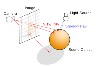 픽셀 별로 가상의 '광선'(Ray)을 카메라로부터 발사하고, 점진적으로 진행시켜서 물체에 닿았다고 판단되면 해당 물체의 색상( Color + Lighting )이 광선을 발사한 픽셀의 색으로 판단하는 기법이다.