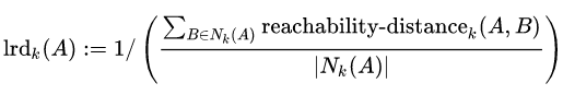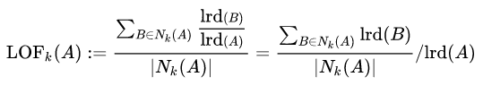 최종적으로 lof는 주변 이웃 점들의 평균 lrd값을 구하고,