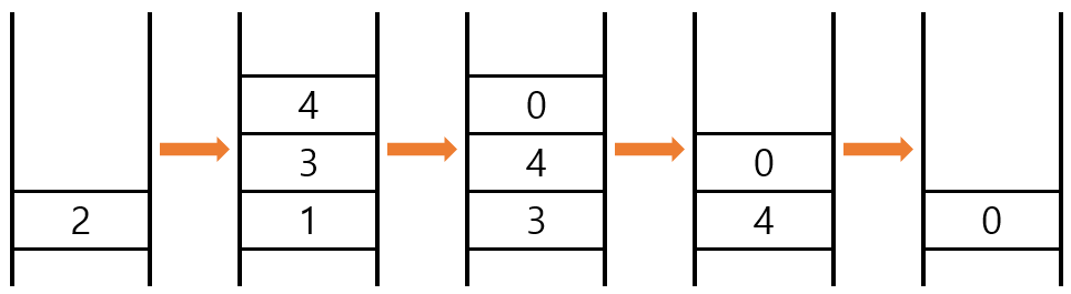 예시 그래프의 노드를 위 순서대로 진행하면 2 1 3 4 0가 된다.