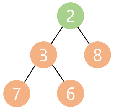 부모 노드는 항상 자식 노드 보다 작아야 한다. 현재 새로 추가된 2보다 부모 노드인 6이 더 크므로
